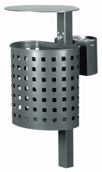 Halbrund-Abfallbehälter mit Haube und Halbrundascher,