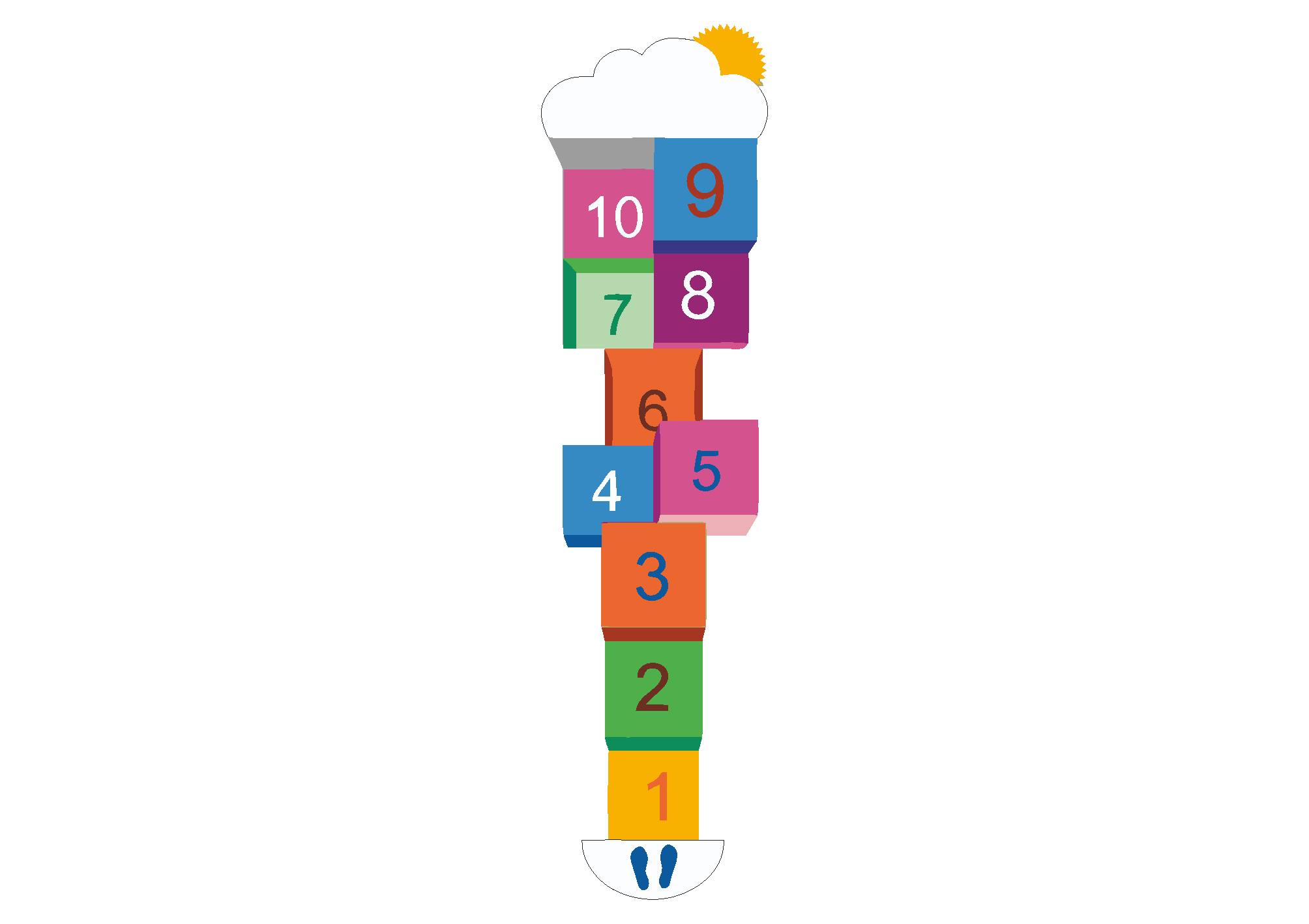 DecoMark™ 3D Hopscotch 1-10 Wolken und Sonne 3400 x 880 mm, VPE= 1
