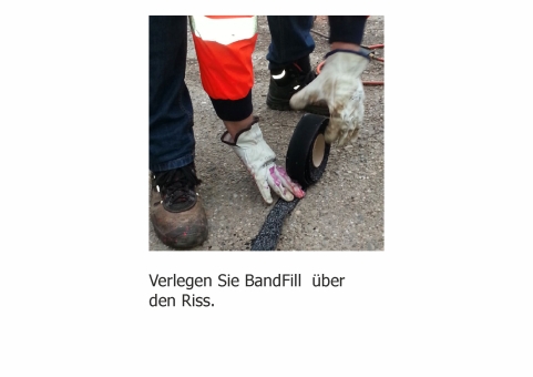 BandFill ist einfach zu handhaben und anzuwenden, nimmt wenig Platz in Ihrem Straßen- und Oberflächenreparaturset ein und benötigt lediglich einen Heißluftbrenner.