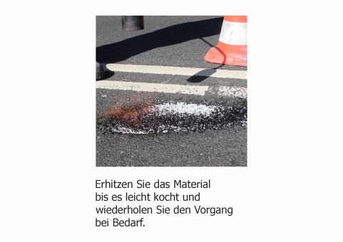 Zur Verarbeitung von ChipFill® benötigen Sie lediglich einen Gasbrenner. Wenn Sie ChipFill® auf Ihrem Fahrzeug mitführen, können Sie auf diese Weise Beschädigungen im Asphalt unmittelbar nach dem Auffinden reparieren.