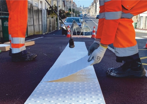 Thermoplastische taktile Markierungen, die Menschen mit eingeschränkter oder keiner Sehkraft im Straßenverkehr sicher unterstützen.